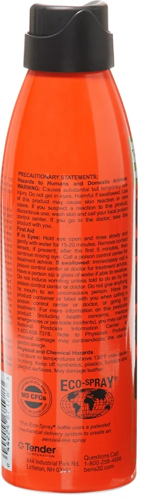 - Without the addition of propellants, Ben’s Eco Spray 6 fl. oz. can contains more actual repellent than other 6 fl. oz. cans