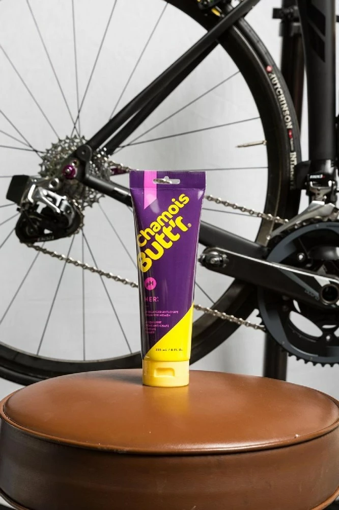 Developed by a female sports doctor in cooperation with professional women cyclists, Chamois Butt’r Her’ anti-chafe cream is pH balanced for women to stop chafing on extended rides.