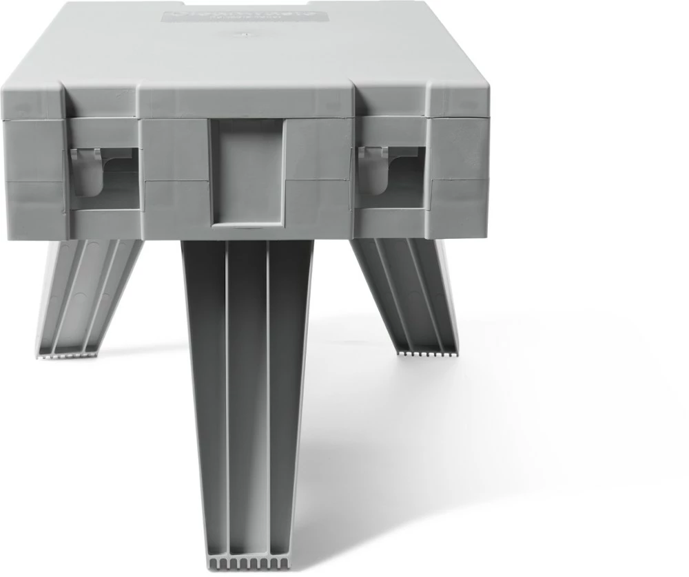 - 3 legs make the toilet stable on uneven ground, and the lid can be placed under the back legs for more stability on soft ground; legs lock in both open and closed positions