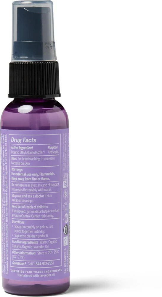 Quickly kill bacteria when no soap and water are available with Dr. Bronner’s Organic hand sanitizer. It also freshens the air with a lavender aroma.