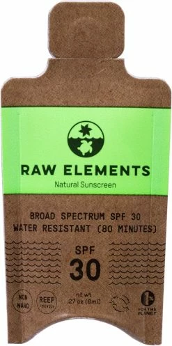 This trial-size pack of Raw Elements broad spectrum SPF 30 natural sunscreen is a full-body, performance-driven sunscreen made from all-natural ingredients.