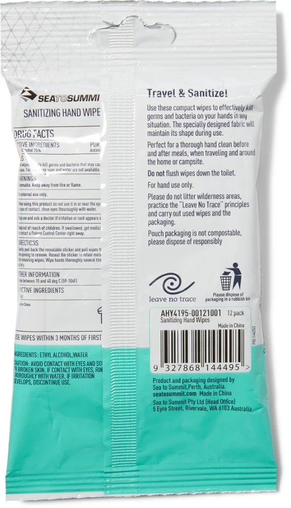 Carry and use the Sea to Summit Sanitation wipes when you’re road tripping, flying and camping to keep your hands, hard surfaces and everyday objects clean and sanitized.